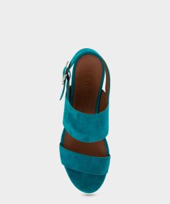 Aerosoles Comfortable Women’s Platform Sandals In Teal Suede | Teal Suede | Women’s Shoes